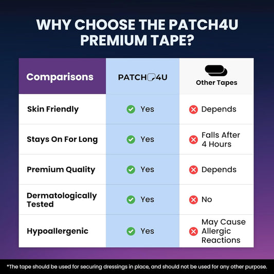 PATCH4U Premium Tape (30 Pack) - Pain Free Removal, Hypoallergenic, Latex Free & Gentle On Skin - Skin Friendly Adhesive Cotton Tape